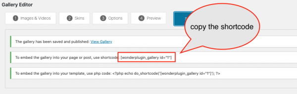 Step 5 - Publish the WordPress gallery and add the gallery shortcode to the WordPress post or page