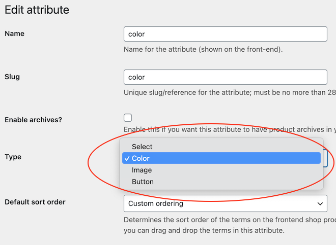Step 2 - Configure the variation swatches plugin to show color or image selections