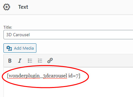 After you create a WordPress 3D Carousel, the Wonder 3D Carousel plugin will provide the 3D Carousel shortcode.