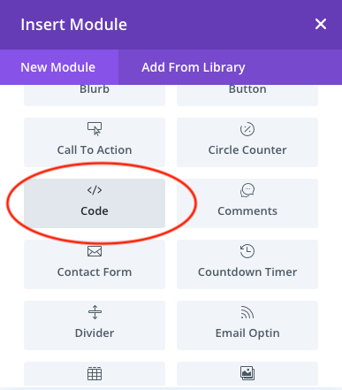 To add the created WordPress audio player to Divi theme, in the page editor, add a Code module.