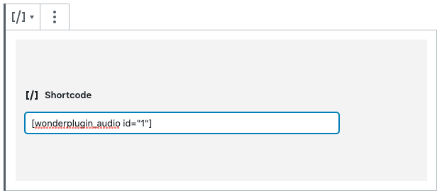 To add the audio player to Gutenberg Editor, in Gutenberg Editor, add a shortcode block, then in the shortcode editor, enter the WordPress audio player shortcode.
