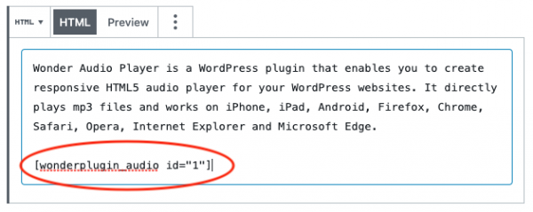 After you create the WordPress audio player, the plugin will provide the audio player shortcode.