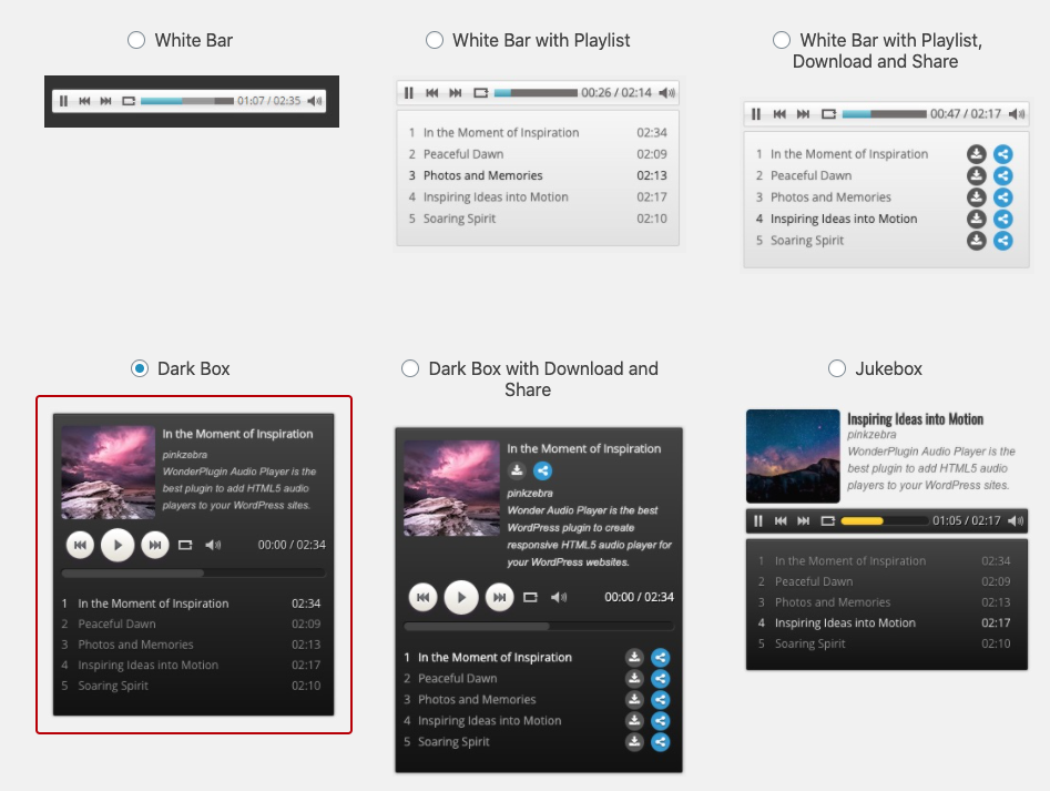 This section will guide you how to create a new WordPress audio player. There are 4 steps.