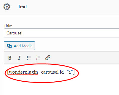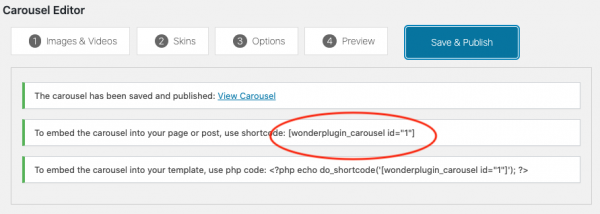 After you create a WordPress Carousel in Wonder Carousel, the plugin will provide the Carousel shortcode.