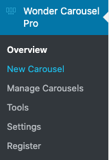 Step 1 - After you install the plugin, in your WordPress backend, go to the left menu, Wonder Carousel > New Carousel and create a new WordPress carousel.