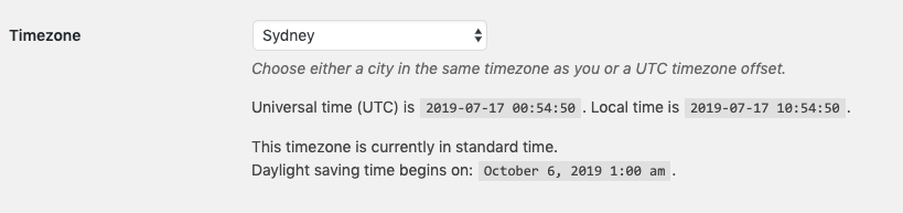 wordpress timezone