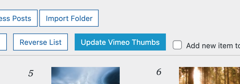In the new versions of the above two plugins, step 1, we have added a new button Update Vimeo Thumbs. The button can automatically update all Vimeo thumbnails in the current slider or gallery at once. Make sure you save the slider or gallery after the thumbnails are updated.