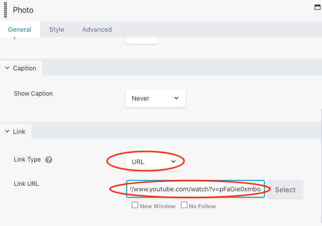 In Beaver Builder, add a Photo module and select an image file. In the bottom Link section, select URL from the Link Type drop down list and enter the lightbox image or video URL to the Link URL input box.