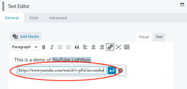 In the popup dialog, enter the image or video URL that you want to open in the lightbox.