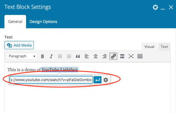 In the popup dialog, enter the image or video URL that you want to open in the lightbox.