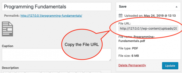 - Step 2 - Upload PDF file to your WordPress and Copy the URL