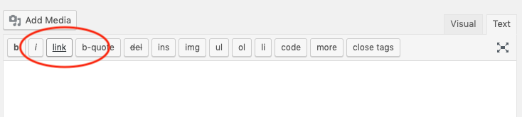 In Text mode, click the link button to insert a link.
