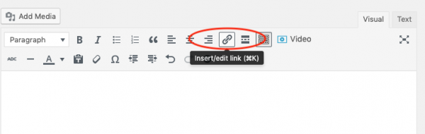 In WordPress classic editor, in Visual mode, click the Insert/Edit link button to insert a link to the copied PDF file URL.