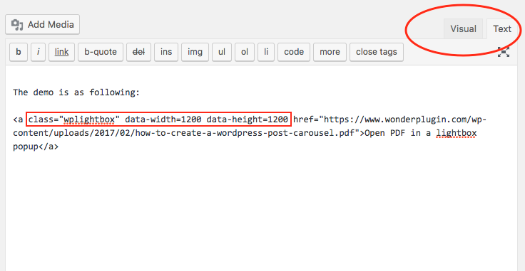 This tutorial will show you how to enable the lightbox by using WordPress classic editor or HTML code. For how to enable the lightbox popup in a WordPress page builder, for example, WordPress Block (Gutenberg) editor, Elementor, WPBakery, SiteOrigin, Divi, Beaver Builder and Brizy Builder, please view Wonder Lightbox Help Document. You only need to change the lightbox URL in the tutorial to the PDF URL.