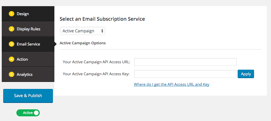 Step 1: Select Active Campaign from the Email Subscription Service List