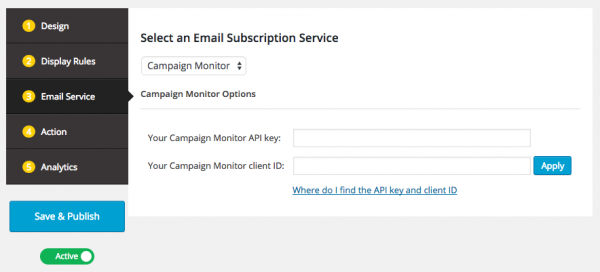 Step 1: Select Campaign Monitor from the Email Subscription Service List
