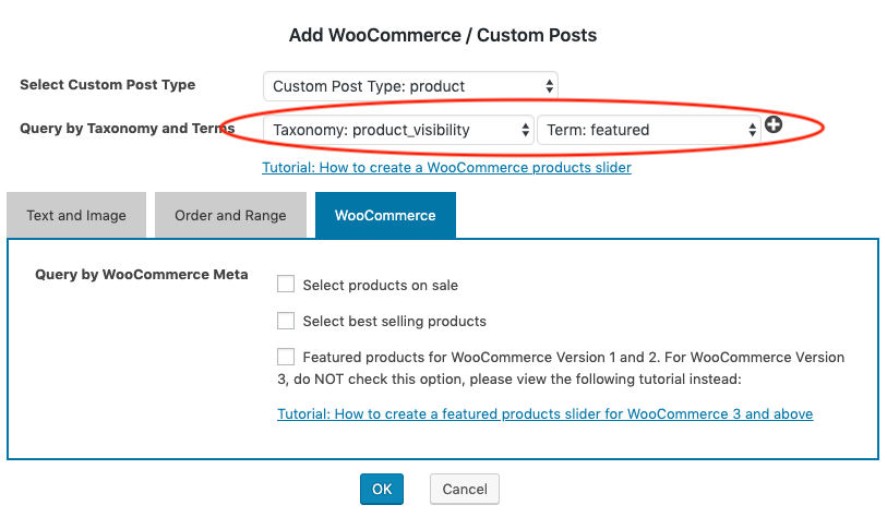 In the slider editor, step 1, click the button Add WooCommerce / Custom Post Type.