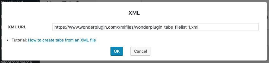 Once you have confirmed the XML file URL is correct, In Wonder Tabs, create a new tab group, in step 1, click the button Import XML, and enter the XML file URL.