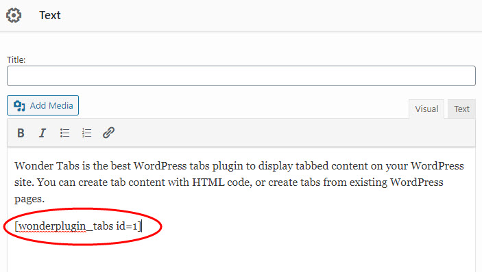 After you create a WordPress Tabs, the plugin will provide the Tabs shortcode.