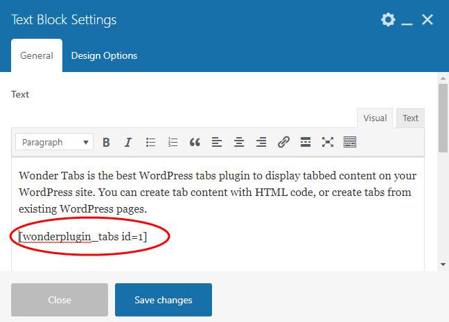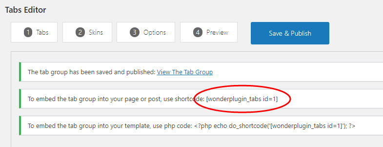 After you create a WordPress Tabs, the plugin will provide the Tabs shortcode.