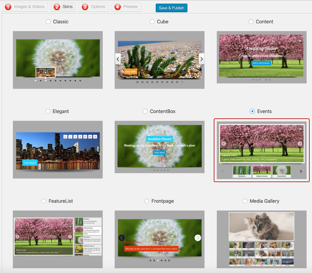 Step 4 - Select a skin and publish the slider