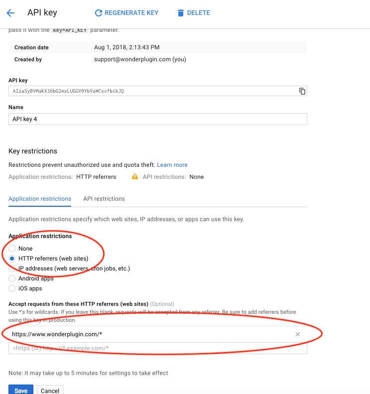 Please pay attention to the HTTP protocol, it's either http:// or https://. Please also note, http://www.yoursite.com is different to http://yoursite.com. Please make sure to enter the HTTP protocol and the domain name of your website correctly, otherwise, the API key will not work and the call to Google API will fail.