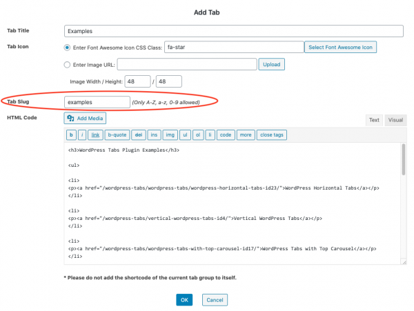 In Wonder Tabs, edit the tab, enter a slug for the tab.