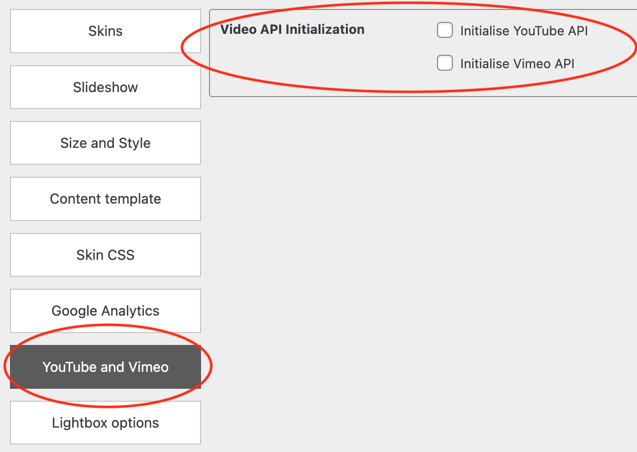 Wonder Gallery: The plugin only initialises YouTube and Vimeo API when you have added a YouTube or Vimeo video to the gallery. It does not initialise YouTube or Vimeo if there is no YouTube or Vimeo video in the gallery.