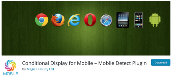 Conditional Display for Mobile is a mobile detect plugin that can be used to control what content is displayed depending on the visitor’s device or web browser, for example, you can use it to only display some content on mobile devices. The plugin also supports adding start time and end time to schedule the content so it will only be displayed in the specified date and time.