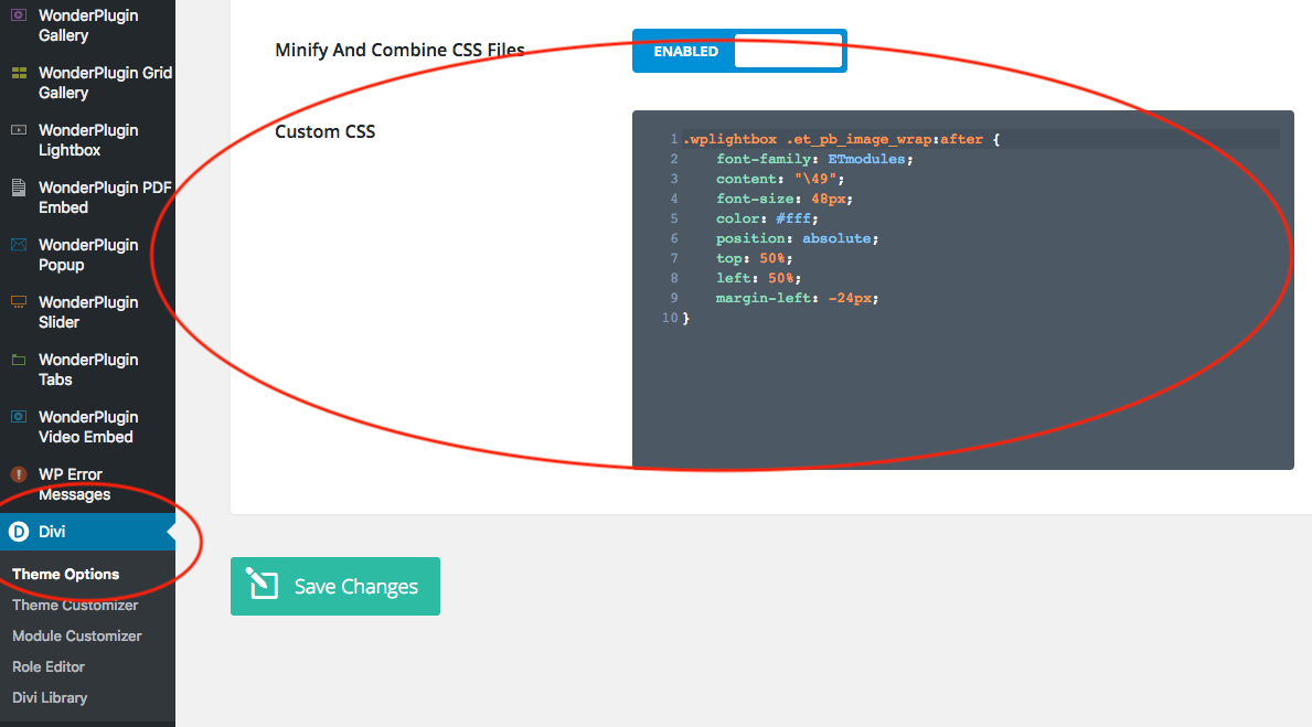 If you want to add a play button on top of the image, in the WordPress backend left menu, Divi -> Theme Options, General tab, scroll down to the bottom of the page, add the following code to the Custom CSS input box: