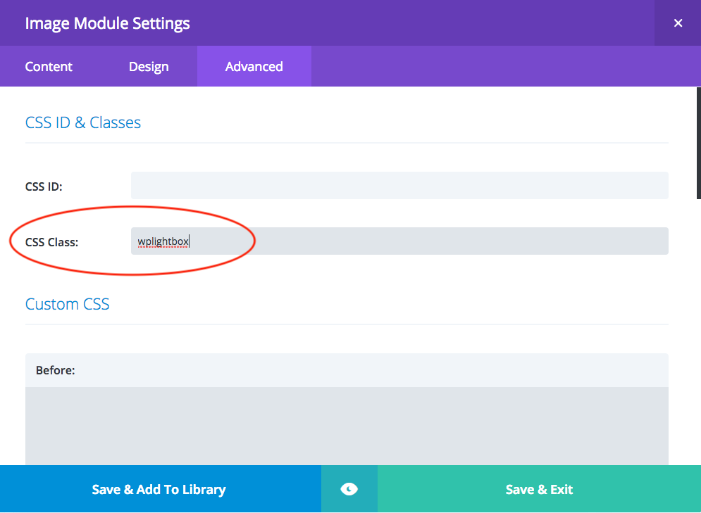 To activate lightbox and open the Video in a lightbox popup, in Advanced tab, enter wplightbox to the CSS Class input box.