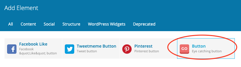 After you have installed Wonder Lightbox, in WPBakery Page Builder, add a Button element.